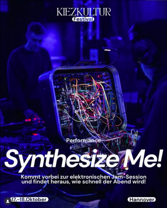 [SYNTHESIZE ME! Vol. 34 @kiezkultur_festival 18.10.🍁] Synthesize Me! ist die Jam-Session mit elektronischen Musikinstrumenten, die bekanntlich eure Sinuswellen-Herzen höher schlagen lässt. Seit Oktober 2022 treffen sich immer wieder unterschiedliche Menschen...