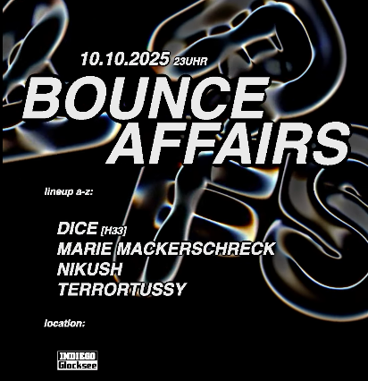 DE:CONSTRUCT x INDIEGO GLOCKSEE präsentieren BOUNCE AFFAIRS Freut euch auf kompromisslose Hardbounce- und Hardtrance-Vibes, treibende Rhythmen und einen energiegeladenen Abriss mit: 🤯 DICE (Haus33) @einfachnurdice 🤯 Nikush (Rush FFM) @nikush_elocin...
