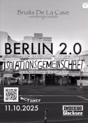 Am 11.10.25 im @indiego.glocksee mit @berlin.zwei.null und Isolationsgemeinschaft. Vorverkauf in unserer Bio