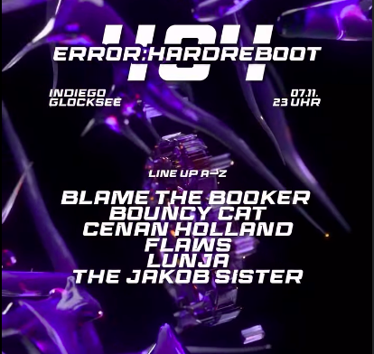 🩵🩷 ERROR:HARDREBOOT🩷🩵🪩 07.11.2025 🪩Bye bye festival summer – welcome back club-season! Finally it’s time to announce our line-up for our next error!Time to reboot the system – harder,...