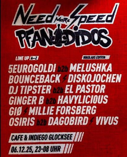 🚨 06.12.25 NIKOLAUS // NEED MORE SPEED x Pfandidos Berlin 🚨 Am Freitag, den 06.12., öffnen wir wieder die Türen der Glocksee Hannover für eine dicke Bescherung! Macht...